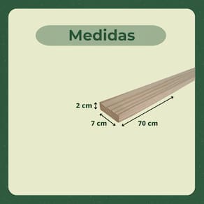Medidas aproximadas de cada ripa/sarrafo: 2 x 7 X 70 cm (A x L x C)