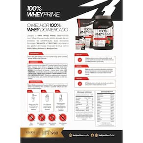 Chegou o 100% Whey Prime, desenvolvido com Whey Concentrado, obtido através de um processo de ultrafiltração. Suas exclusivas fórmulas CREA-ATP e T-BIOTINE irão elevar o seu ganho de massa muscular Evolua com o 100% Whey Prime da Bodyaction. Exclusiva fórmula CREA-ATP - Creatina com potência dobrada através da fórmula potencializada com Glicina elevando o ganho de força e os níveis de energia durante os treinos. Exclusiva fórmula T-BIOTINE - Potencializa os níveis de energia através do transporte de oxigênio no sangue - Ajuda a diminuir dores, fazer com que os treinos sejam mais intensos e melhorar os ganhos de massa muscular - Atua diretamente na produção de elastina no tecido muscular Apresentação: Refil 900g Tabela Nutricional: Anexada nas fotos secundárias Modo de preparo: Misture 30g aprox. 1 scoop em 200ml 1 copo americano de água ou bebida de sua preferência.