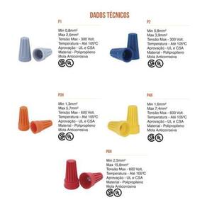 os conectores de torção emendam cabos flexíveis e fios rígidos de forma prática e segura. Ao contrário da fita isolante que resseca com o calor e o tempo os conectores mantém a emenda isolada por muito mais tempo. Protegida por uma capa isolante, encontra-se a mola interna que se expande para acomodar firmemente os condutores e os mantém unidos sob pressão constante, sem danificá-los, para soltar os fios basta girar o conector no sentido anti-horário, podendo ser em outra conexão. 1000 conectores no total 250 cinzas, 250 azuis, 200 laranjas, 200 amarelos e 100 vermelhos
