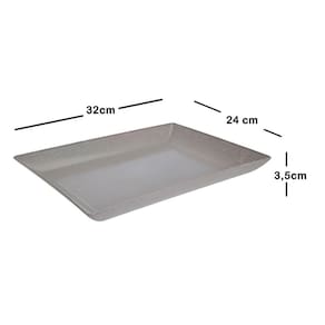Demais características: -dimensão: 32cm comprimento x 24cm largura x 3,5cm altura - Vai à lava louça; - Microondas de 2 a 3 minutos - Produto atóxico;