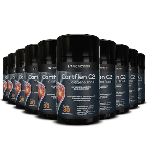 Através deste anúncio, você está adquirindo 10 dez potes de cartflen c2 colageno tipo ii 30comprimidos hf suplementos