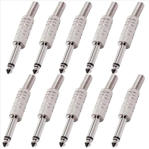 10X Kit 10 Plug P10 Conector Mono Metálico Guitarra Violão