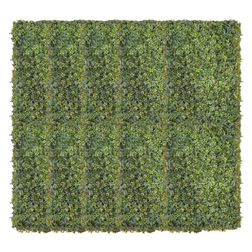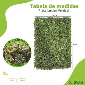 Características * Aparência Realista: Folhagens com mescla de tonalidades aparência natural * Versatil: Perfeita para decoração de festas, eventos, varandas, escritórios, áreas de lazer e muito mais. * Material: Plástico de alta durabilidade, resistente. * Dimensões: 60 cm de altura por 40 cm de largura. * Instalação: Pregos, parafusos, abraçadeiras de nylon ou ganchos * Kit com 10 Placas