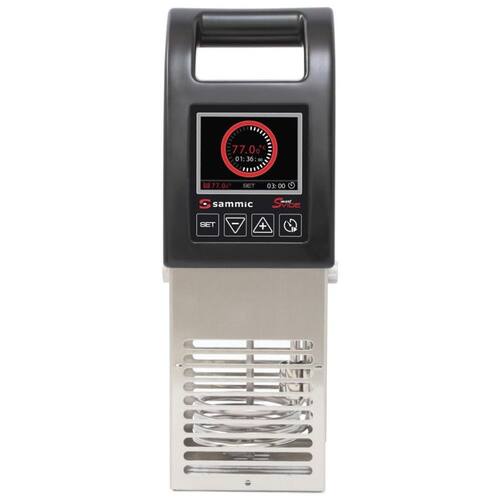 Fogão Sous Vide da Sammic SMARTVIDE7, circulador de imersão com agitador, capacidade de até 56 litros, 14 galões, display TFT colorido. conectividade Bluetooth para HACCP, atualização automática de firmware, capacidade de sonda de núcleo, sistema de aviso, alarme de temperatura de núcleo, temporizador integrado, construção em aço inoxidável e poliamida reforçada, pronto para SmartVideTrack, 2 HP, 1,4 kW, 120v, 50 60, 1 ph, 11,s, NSF Marca: Não Informado