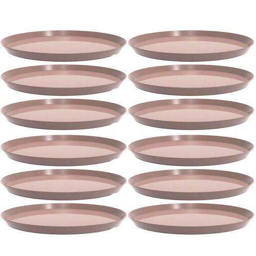 Garantia: 90 dias / Peso de cada: 202g / Cor predominante: amêndoa / Referência: 7794462433096; Dimensões de cada: 34cm (D) x 2cm (A); Conteúdo: 12 bandejas redonda; Material: polipropileno.