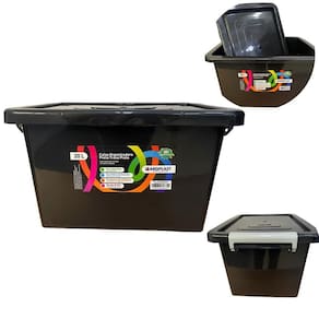 Caixa organizadora preta 20l empilhável trava e rodizio