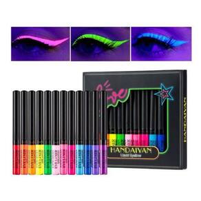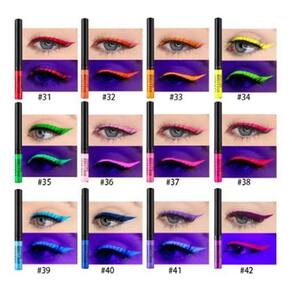 Kit com 12 canetas delineadoras coloridas - Luz UV Neon. O Delineador Colorido é nova tendência com muita cor e alegria São 12 cores UV super pigmentadas e divertidas para você ousar e criar delineados diferentes. Com textura líquida e ótima fixação, ARRASE nos traços coloridos, vazados e até dar um up no tradicional gatinho. - Faça make para o Dia ou Noite luz UV - Fácil Aplicação - Excelente Pigmentação com cores vivas - Tipo Lápis mais prático - Secagem rápida - Longa duração - A prova D água - Luz UV Neon Marca: Divertida Make