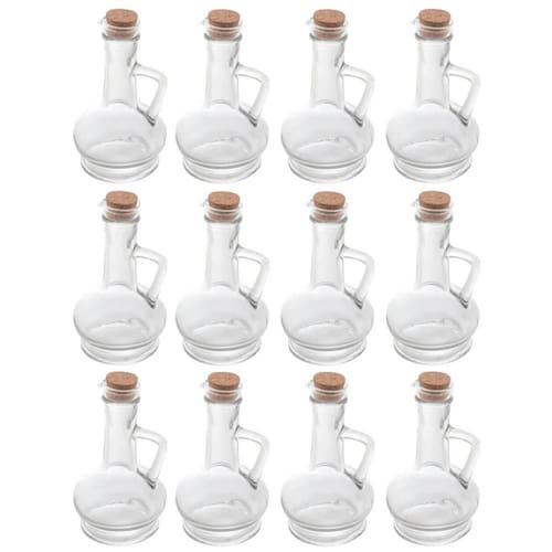 Garantia: 90 dias / Peso de cada: 0,292kg / Cor predominante: transparente / Ref: 7794462392812; Dimensões do pote: 9cm (D) x 15cm (A); Conteúdo: 12 galheteiros de vidro Lyor; Capacidade de cada: 230ml; Material: vidro, rolha.