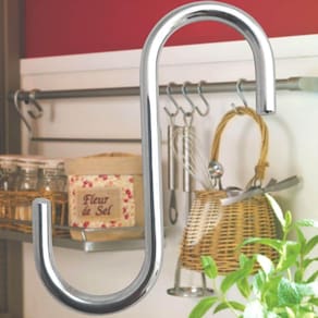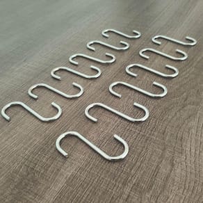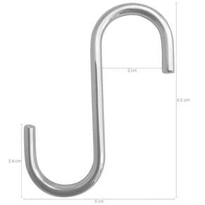 Pequenos cuidados com seu lar fazem toda a diferença. #Produzidos em Aço Cromado #Conjunto 12 Ganchos #Aperfeiçoa Espaço Garantia: 90 Dias / Peso: 170g / Cor: Cromado / Ref: 152955X12 Dimensões: 4mm (C) x 5cm (L) x 6,5cm (A) Formato: Gancho Tipo S Espessura: 4mm Abertura: 2cm Conteúdo: 12 Ganchos Cuidados: Não lavar com materiais abrasivos. Material: - Aço cromado: Na sua produção é acrescentada uma quantidade significativa de cromo, que proporciona ao material brilho e resistência. O kit de ganchos para cozinha possui excelente qualidade e podem ser utilizados na sua barra para utensílios de cozinha, deixando tudo mais ordenado e prático. O gancho para pendurar em aço cromado é perfeito para organizar seu ambiente. Ideais para pendurar seus utensílios domésticos que você mais usa no dia a dia, como colheres, xícaras, talheres, toalhas, deixando sua bancada sempre livre e organizada com seus utensílios sempre visíveis e ao alcance das mãos.