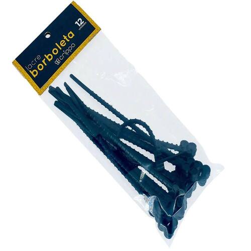 12 Lacres Reutilizáveis Cinta Plástica Formato Borboleta Preto Crippa