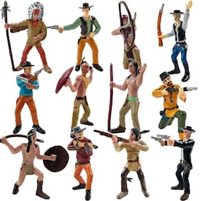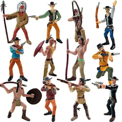 Um clássico brinquedo de cowboys e índios para horas de brincadeiras históricas imaginárias! Os brinquedos de cowboy e índio ajudarão as crianças a aprender sobre a história aventureira dos pioneiros americanos e melhorar o conhecimento da história dos EUA. Nosso playset de figuras do oeste selvagem inclui 12 figuras de plástico pintadas à mão! As possibilidades imaginativas de brincar de faz de conta são infinitas! À procura de novos assentamentos e descobrindo o oeste, as crianças vão adorar criar histórias e usar sua imaginação para horas de emocionante brincadeira no oeste selvagem. Feito de plásticos duráveis e materiais de qualidade premium. Ótimo para lembrancinhas de festa de aniversário de crianças, projetos escolares, decoração de salas e também um presente ideal para colecionadores e amantes ocidentais. Para maiores de 3 anos.
