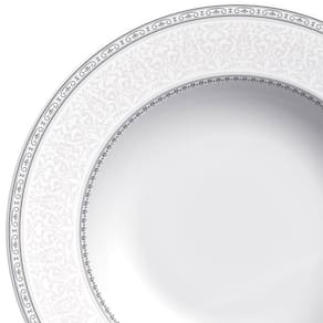 DESCRIÇÃO DO PRATO FUNDO TRAMONTINA GABRIELLE - Para deixar suas refeições ainda mais especiais e degustar aquela sopa deliciosa com muito mais elegância, o prato fundo Tramontina Gabrielle em porcelana decorada 23 centímetros de diâmetro é indispensável. - Com decoração inspirada nas estilistas e profissionais da moda, ele conta com desenhos inspirados em rendas costuradas a mão e detalhes delicados como tecidos. - A porcelana de sua fabricação é exclusiva Tramontina e é a tradicional, ou seja, é translúcida e possui excelente brancura, brilho, alta resistência mecânica e porosidade próxima de zero, que ainda evita a proliferação de fungos e bactérias. - Sem dúvida, a escolha ideal para compor uma mesa impecável!
