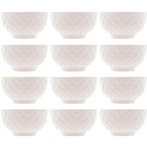 12 Tigelas de Porcelana Branca 280ml Bowls Lyor Diamond para Frutas Molhos Casa Restaurante.