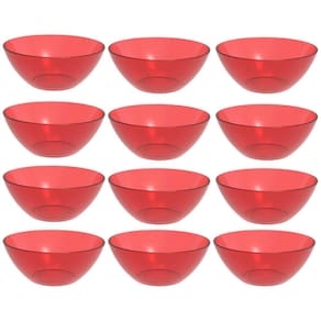 12 Tigelas Pequena Vermelha Transparente Crippa Travessa Redonda 2,3L Servir Salada Sobremesa