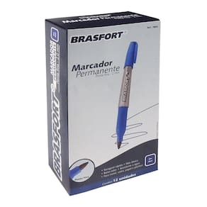 12 Un Caneta Marcador Permanente Ponta Fina Azul Brasfort