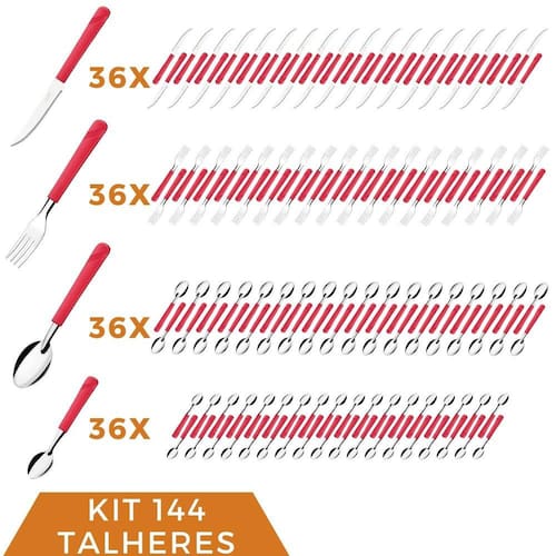 144 Talher Inox Colher Chá Garfo Faca Colher Luna Vermelho