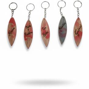 Prancha de Surf Recortada em Madeira e Gravada em Pirografia – Personalizada Mini prancha de surf artesanal, recortada em madeira e decorada com gravação em pirografia, oferecendo um design único e detalhado. Pintada com tinta acrílica, pode ser utilizada como chaveiro ou troféu de mesa, além de ser perfeita para a montagem de trabalhos manuais e painéis decorativos. Características: