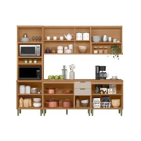 Kit De Cozinha Completa 5 Peças Selene (2aéreos+2balcões+1paneleiro) Cp03 Jequitiba/off White Fosco - Linea