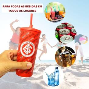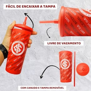 Copo plástico vermelho com tampa canudo 500ml infantil bebidas internacional oficial colorado O copo plástico com canudo - inter é perfeito para os mais apaixonados demonstrarem todo o carinho pelo seu time do coração.