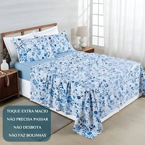 Contém na embalagem: 01 Lençol de Cima 2,40m x 2,40m 01 Lençol de Baixo com Elástico para Colchão de 1,98m x 1,58m x 40cm 02 Fronhas 70cm x 50cm