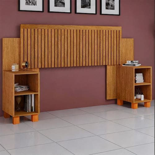 Inclui 2 mesas de cabeceira com nichos organizadores
