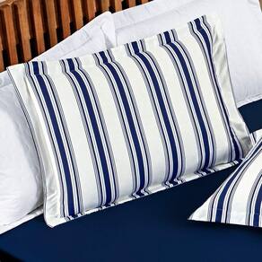 Jogo Cama Lençol Daily Queen Malha 100% Algodão Listrado 4 Peças - Azul Marinho
