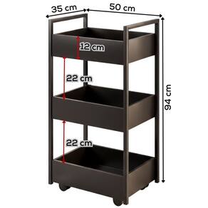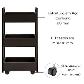 Carrinho Organizador Multiuso 3 Cestos Bp Lais 50 Cm Preto Eratto Moveis