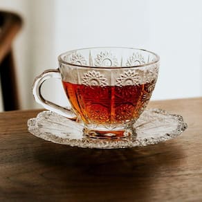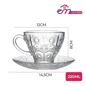 Xícara de Chá Vidro Transparente com Pires Bohemia Café Relevo 220ml Em Casa Tem