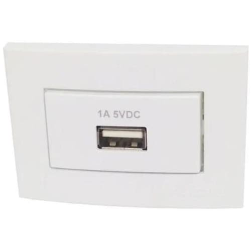 Tomada para embutir em madeira, MDF, MDP ou derivados. Utilizada principalmente na marcenaria, ideais para peças planejadas como armários, cabeceiras, painéis, bancadas, balcões de cozinha, mesas para escritório, entre outras1 Saidas USB, Bivolt Automático, 5Vcc/Max. 1acor: BrancaComposição: Materiais plásticos isolantes termoplásticos de engenharia e ligas metálicas condutorasComprimento: 41.9mm / Largura: 65mm / Altura 45mm
