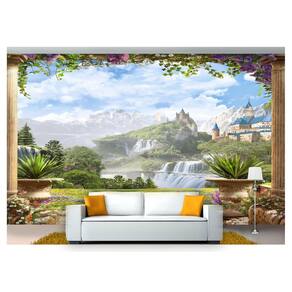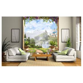 Papel De Parede Paisagem Castelo Cachoeira 3D Dav28