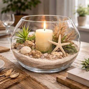 Seu formato redondo estilo aquário valoriza qualquer composição, sendo ideal para terrários, arranjos florais, suculentas, cactos, velas decorativas, pedras, areia e projetos de decoração em geral. A borda e a base reforçadas proporcionam segurança adicional durante o manuseio e o uso.