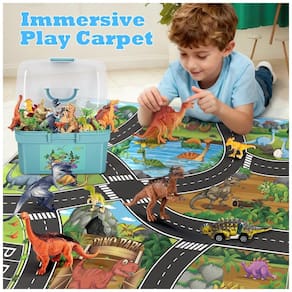 Os brinquedos de dinossauros são uma das melhores opções para crianças de 2 a 5 anos, pois despertam horas de criatividade enquanto as crianças brincam com criaturas lendárias O conjunto também inclui carros retráteis de dinossauros que podem percorrer longas distâncias sem necessidade de bateria, tornando os ainda mais emocionantes para as crianças. O tapete de dinossauro tem um tamanho grande o suficiente para 24 crianças desfrutarem de seu Jurassic World, permitindo que elas compartilhem suas ideias de imaginação sobre dinossauros com amigos e familiares.