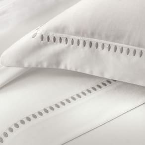 Disponível em três versões de bordado branco, preto ou cinza o Cerclê é uma peça-chave para quem valoriza sofisticação atemporal. Para um toque extra de charme, o conjunto conta ainda com opções coordenadas como capa de almofada rolo e fronha body pillow.
