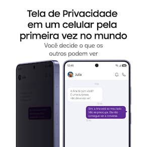 O Galaxy S26 Ultra conta com uma grande novidade que é a Tela de privacidade. Permite que você proteja sua privacidade deixando a tela menos visível quando vista por um ângulo lateral.