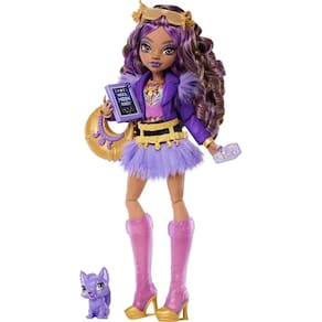 Cuidado: esta boneca Monster High tem um estilo tão incrível que chega a assustar! Clawdeen Wolf está super na moda com seu traje roxo peludo e sete acessórios. Além disso, sua fiel companheira, a lobinha Crescent, está ao seu lado para participar de todos os tipos de aventuras ao luar! Crianças a partir de 4 anos vão adorar explorar os corredores de Monster High com esta boneca articulada da Clawdeen Wolf. Totalmente articulada. A boneca não fica em pé sozinha. As cores e decorações podem variar. O visual da boneca Clawdeen Wolf é moderno e super estiloso! Com seu lobo de estimação, Crescent, e 7 acessórios, ela está pronta para um dia incrível em Monster High. Esta lobisomem combina uma jaqueta de couro estilo motoqueiro com uma saia de pele sintética e botas até o joelho que são de arrepiar! Detalhes dourados da cabeça aos pés adicionam um charme celestial ao seu visual. A boneca Clawdeen Wolf também vem com acessórios para estilizar e contar histórias: uma bolsa em formato de lua crescente, óculos de sol, spray para pelos, iCoffin, livro sobre as fases da lua e um croissant cósmico! Atenção: uma overdose de fofura assustadora! O filhote de lobo Crescent vem até com um copinho de chantilly para que ele possa participar da pausa para o lanche do seu dono na cafeteria!