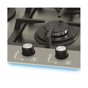 Os queimadores possuem tecnologia italiana de alta eficiência e durabilidade. O cooktop possui 5 queimadores:1 tripla chama (3700W), 2 rápidos (3000W) e 2 semi-rápidos (1750W).