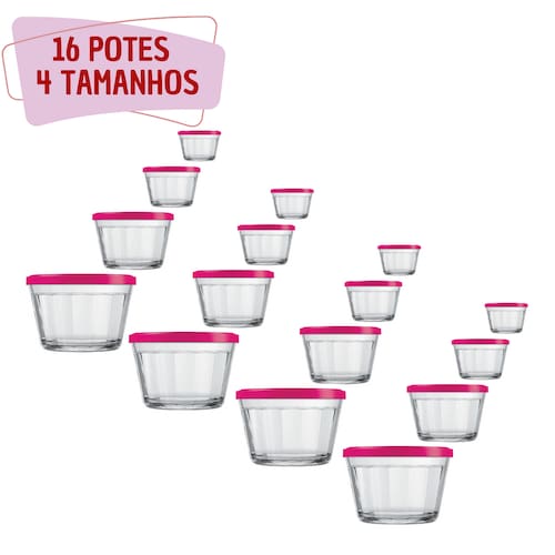 16 Tigelas de Vidro Americano Tampa Plástica Sortida 4 Tamanhos