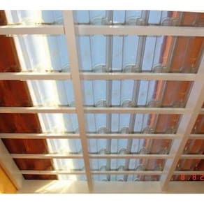 Altura: 4,5cm Largura: 14cm / 11cm Comprimento: 43cm Cobertura: 26 telhas/m2 Peso: 220 gramas Vantagens Elimina umidade, fungo e mofos Com a entrada de luz solar, a temperatura e a claridade não permitem que os fungos se reproduzam e proliferem. A umidade também é consideravelmente reduzida, diminuindo a necessidade de manutenção nas áreas de forro e sótãos, locais onde há pouca visibilidade direta. Evita a presença de animais de hábitos noturnos. baratas, ratos, morcegos, etc. A luminosidade proporcionada pelas telhas transparentes, faz com que forros, lajes e sótãos fiquem iluminados durante o dia. Isso ajuda a evitar a presença nestes ambientes de animais de hábitos noturnos que, durante o dia, gostam de locais escuros e úmidos para se refugiar. Gera economia na conta de energia elétrica Em locais de circulação onde não há forração áreas de serviço, lazer, depósitos etc. a instalação de telhas transparentes permitirá que a luz solar clareie o ambiente sem a necessidade do uso de lâmpadas. Quanto maior o número de unidades por metro quadrado, tanto maior será a iluminação. Assim, instale a quantidade necessária para que, durante o dia, não seja necessária a utilização de lâmpadas no ambiente. Alternativa para projetos de design arquitetônico As telhas transparentes, em seus diversos modelos, proporcionam inúmeras alternativas para projetos arquitetônicos que tenham como objetivo o melhor aproveitamento da luz solar nos ambientes, sem abrir mão da beleza do telhado. A boa disposição e mescla das telhas transparentes com as normais podem gerar um efeito inovador e moderno ao telho de varandas, áreas externas e coberturas em geral.