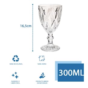 Conjunto 18 Copos Transparente Taça Diamante Agua Vinho 300ml