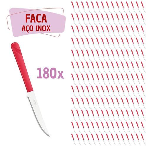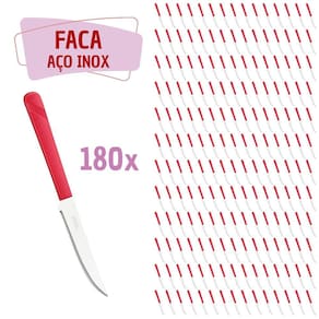 Conjunto de Facas As facas de mesa da linha Luna são um conjunto elegante e funcional para qualquer mesa de jantar. Com um cabo vermelho vibrante feito de plástico de alta qualidade, estas facas são confortáveis de segurar e fáceis de identificar em meio a outros utensílios de mesa. O aço inox de alta qualidade das lâminas garante que elas permaneçam afiadas por um longo tempo, enquanto o design elegante torna as facas uma adição atraente à sua coleção de utensílios de cozinha.