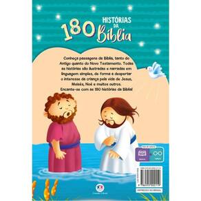 Conheça passagens da Bíblia, tanto do Antigo quanto do Novo Testamento. Todas as histórias são ilustradas e narradas em linguagem simples, de forma a despertar o interesse da criança pela vida de Jesus, Moisés, Noé e outros. Encante-se com as 180 histórias da Bíblia!