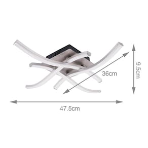 Lâmpada de teto LED acrílica moderna de 4 luzes 18W Luz de tetoMaterial: Ferro + Alumínio + AcrílicoAcessório: Comprimento total: 46 cm / 18 "Dossel: 14 cm / 5,5" Altura total: 7 cm / 2,76 "Lâmpada incluída. Tipo de lâmpada: Integrado LED Potência total: 24W Vida útil: 45000 horas LED de poupança de energia: 1667 lúmens com branco quente 3000K / branco frio 6000K [SOMBRA ACRÍLICA E CONTAS LED] Abajur acrílico e base de metal, boa transmissão de luz, grande dissipação de calor, use contas de lâmpada tipo 2835 de alta qualidade. [ECONOMIA DE ENERGIA E PROTEÇÃO OCULAR] As 4 placas LED incorporadas fornecem 3000K e 1650 lúmens de luz quente. Não só cria uma atmosfera suave e doce com CRI>80, mas também protege os seus olhos. [LÂMPADA PEDANTE ELEGANTE] Esta luz de teto LED é projetada como uma forma de onda curva, tem uma aparência única e inovadora, que pode iluminar sua casa enquanto a decora. [AMPLA APLICAÇÃO] A luz de aparência ultra-moderna É uma decoração perfeita para a sala de estar, quarto, escritório, cozinha, sala de jantar, sala de hóspedes, etc.