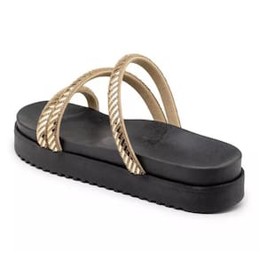 ` Sandália Papete Feminina Sola Preta Alta com Tiras de Strass Dourado Apresentamos a elegante Sandália Papete Feminina da TERRADOSCALCADOS, perfeita para quem busca conforto sem abrir mão do estilo. Esta sandália possui uma sofisticada sola preta alta, garantindo não apenas um visual moderno, mas também maior estabilidade e conforto ao caminhar. As tiras de strass dourado acrescentam um toque de brilho refinado, tornando este calçado ideal para ocasiões casuais e eventos sociais. Seja para um passeio à tarde ou uma noite especial, esta sandália é a escolha perfeita para complementar seu guarda-roupa. Principais Características:\nSola alta preta confortável Tiras de strass dourado Design elegante e sofisticado Material de alta qualidade para durabilidade\nEspecificações Técnicas:\nCor: Preto com detalhes em dourado Material: Sintético e strass Tamanhos disponíveis: 34 ao 40 Marca: flor da pele\nPor Que Escolher a Sandália Papete ? Além do design moderno e características premium, a Sandália Papete oferece uma experiência única de conforto, permitindo que você desfrute do dia a dia com estilo. `