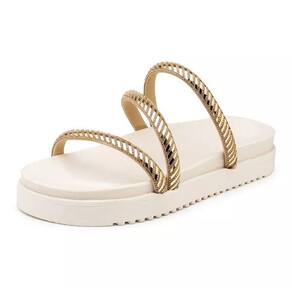 199066FP-Sandália Papete Feminina Sola Preta Alta com Tiras de Strass Dourado - 34 - Branco