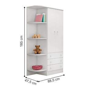O guarda roupa é feito em MDP 12/15mm,com 2 portas, 3 gavetas e 7 prateleiras.