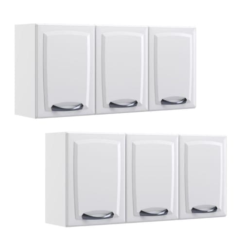Kit 2 Armários Aéreos Multiuso Itatiaia Aço 3 Portas New Premium Cozinha e Área de Serviço Branco Neve