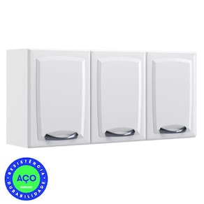 - Cor: Branco Neve - Material da Estrutura: Aço - Revestimento: Pintura Eletrostática a pó de alto brilho e resistência - Quantidade de Portas: 3 - Quantidade de Puxadores: 3 - Quantidade de Prateleiras: 2 - Material dos puxadores: Plástico metalizado. Puxadores ABS com acabamento cromado. - Dobradiças Metálicas 26mm: Aço - Escala de Brilho: Semibrilho - Mais espaço e organização: Espaços internos funcionais