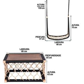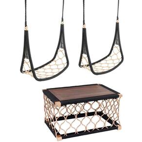 2 Balanços Suspenso E Mesa Tampo De Madeira Em Alumínio Bronze E Corda Náutica Para área Externa Trama
