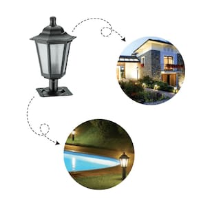 Garantia: 90 dias / Peso total: 1,450kg / Cor predominante: preto / Ref.: 7794463073253; Dimensões de cada balizador: 18cm (C) x 18cm (L) x 31cm (A); Soquete: E27, não acompanha lâmpada; Materiais: polipropileno e alumínio; Potência: até 20W; Voltagem: bivolt; Conteúdo: 2 balizadores de muro.