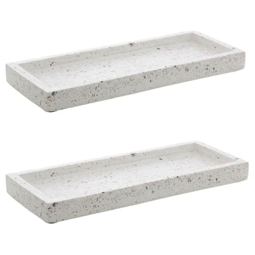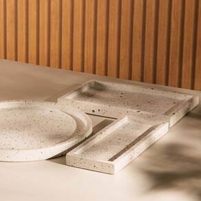 Conjunto 2 Bandejas de Mármore Terrazzo Lyor 26,5x17x2cm Retangular Aparador Bancada Sala Banheiro
